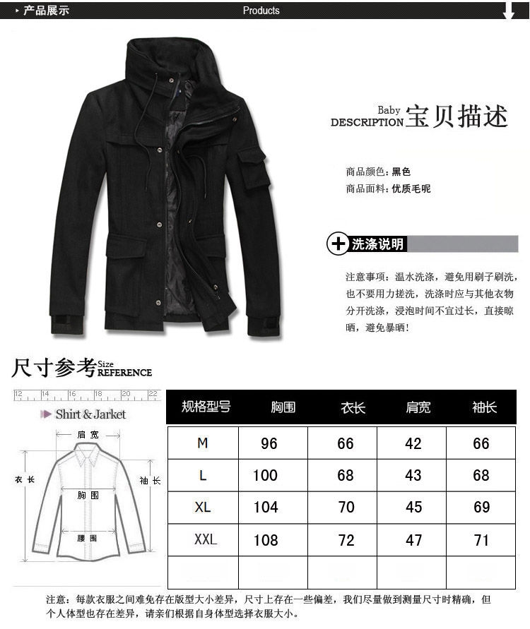 M: Chest: 96cm, Length: 66cm, Shoulder Width: 42cm, Sleeve Length: 66cm